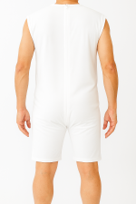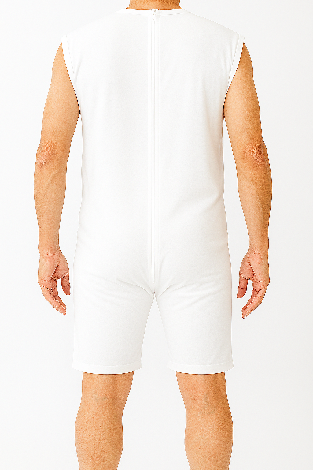 Hoogwaardige body, mouwloos en korte broekspijpen met ritssluiting op de rug. Voorkomt het zelfstandig benaderen van incontinentiemateriaal.