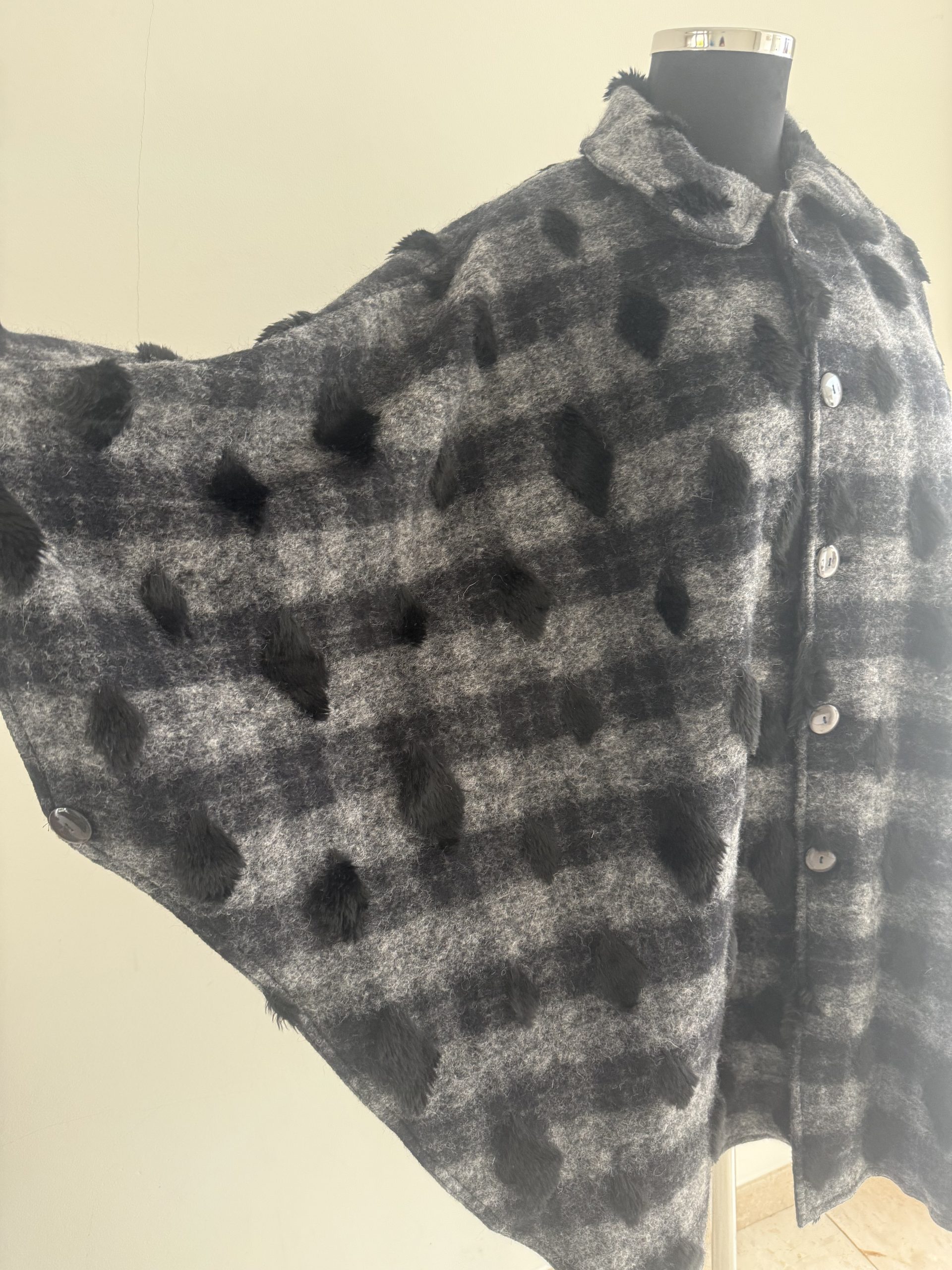Kleur zwart/grijs geruit met zwarte ruit accenten